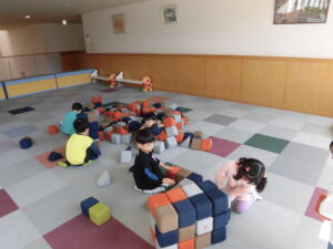 クラス毎、天気の良い日は戸外で遊んだり、多目的ホールで遊んだりと楽しく過ごしています。